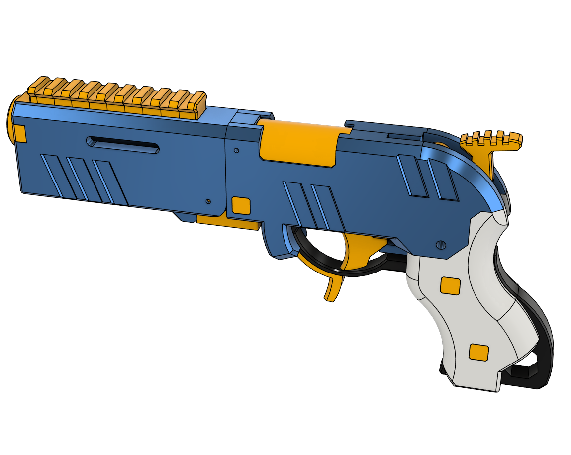 This is once more a shell for the X-Shot Micro 2.0, the newest tiny blaster variant from X-Shot/Zuru. All the hardware you need is already provided by this Micro, too. (Well, except for a few common household rubberbands and some crafting foam for the seal.) You just need to print the parts in the colors of your chosing and you’re good to go to take a screwdriver to the blaster.